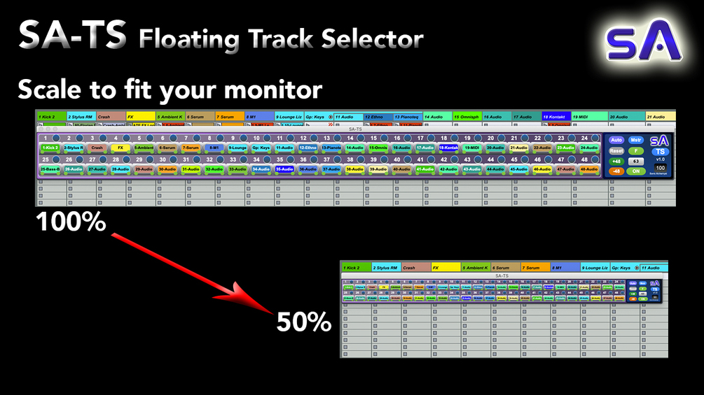 The SA-TS is a customizable floating track selector, allowing to quickly and efficient jump to tracks in your project, without the need to scroll.